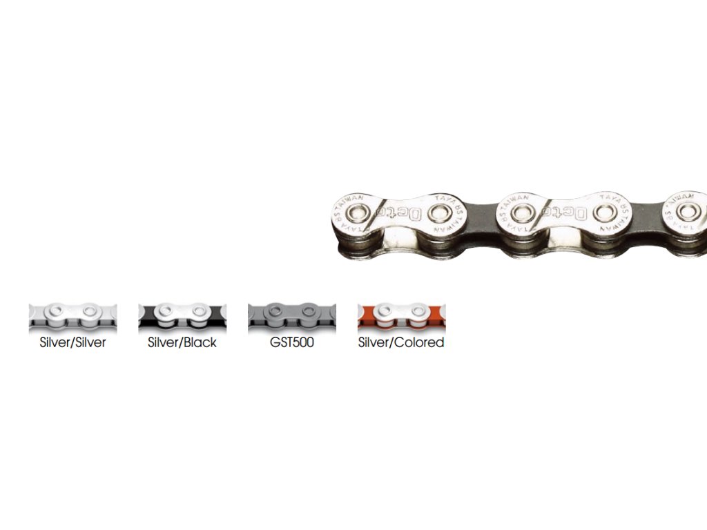 Kvalitní řetěz Taya pro silniční i horská kola s 8-mi a 7-mi rychlostními systémy.