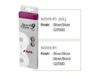 Kvalitní ultra light řetěz Taya NOVE-91 (UL) pro 9 rychlostní systémy kol je vyvinut tak, že vydrží najetí až 5000 km.